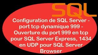 SQL - Configuration de SQL Server - port tcp dynamique 999 - Ouverture port 999 en tcp pour SQL Server Express , 1434 en UDP pour SQL Server Browser - T2SI Playlist SQL : https://www.youtube.com/pl...